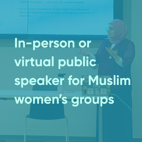Private, 1:1 sessions helping women take their existing 401k's and investment accounts and make them halal.